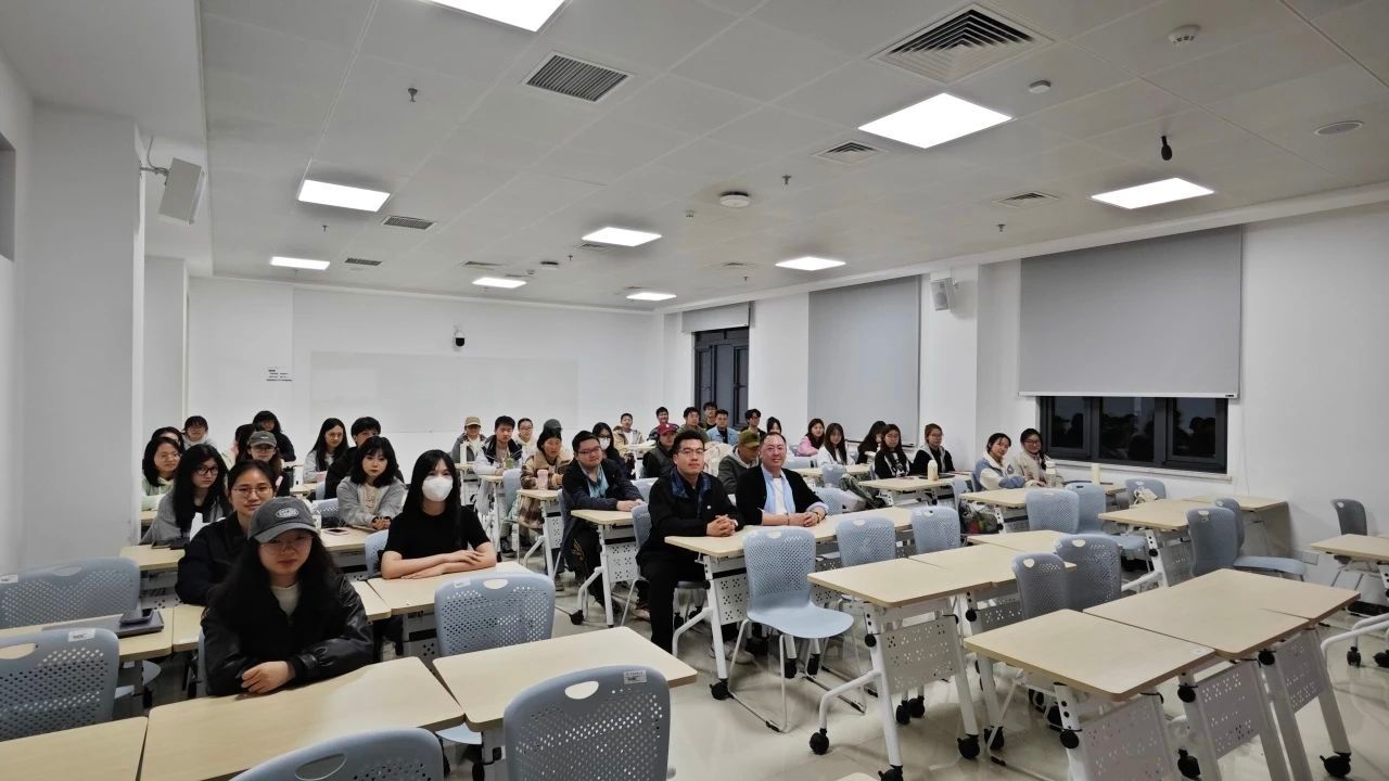 20:40,曲纵翔老师走进刚刚下课的教室,春雨打湿他的镜片,他顾不上擦眼镜,面向2021级公共管理类专业的“考研动员会”在丰台校区日新楼210教室正急着开始。