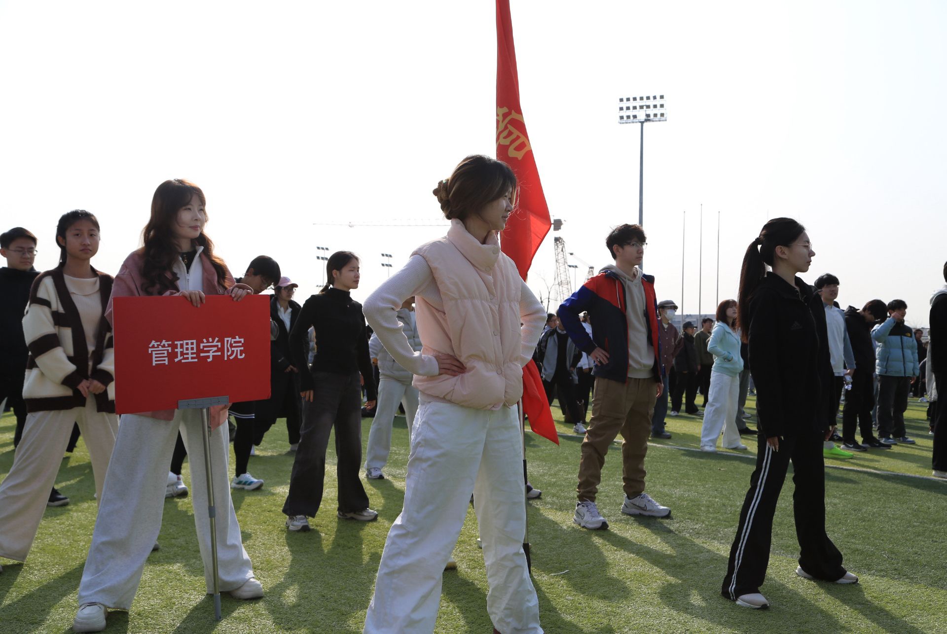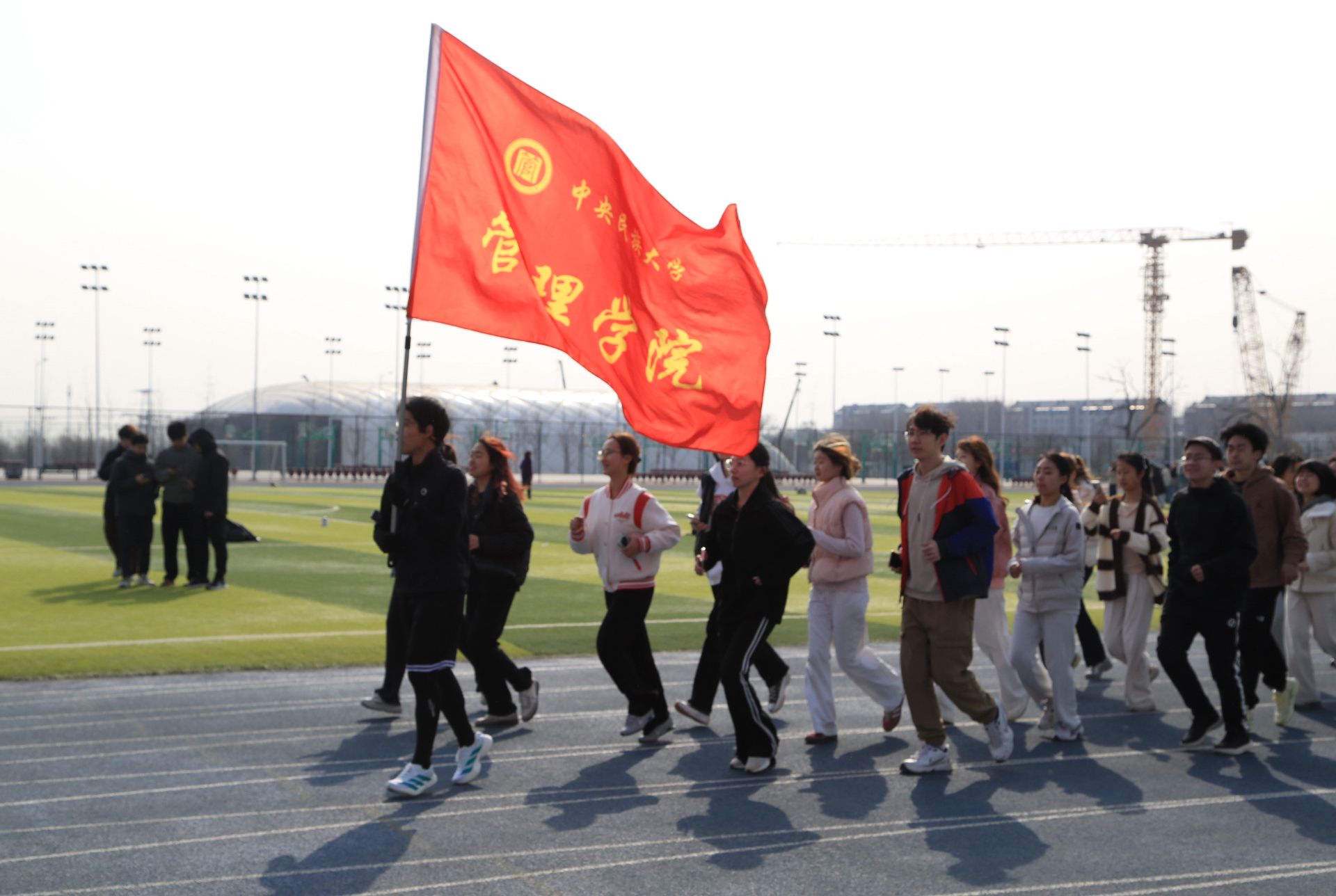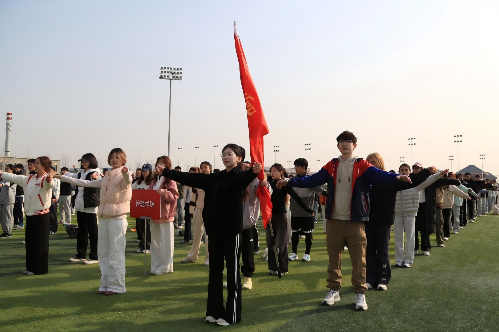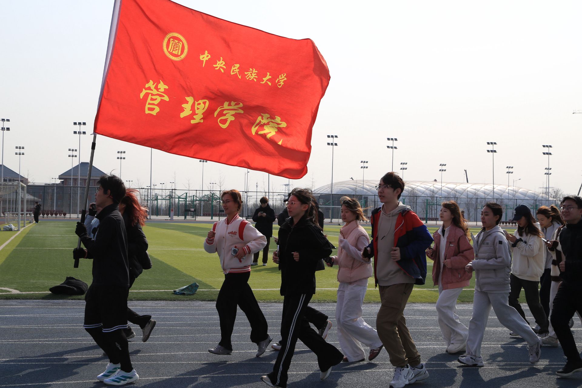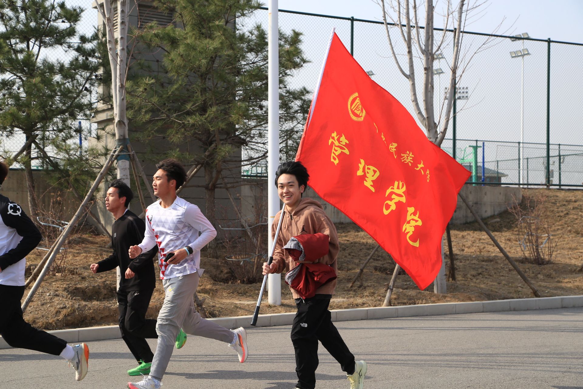 春日的暖阳铺满跑道,管院的旗帜迎风飘扬