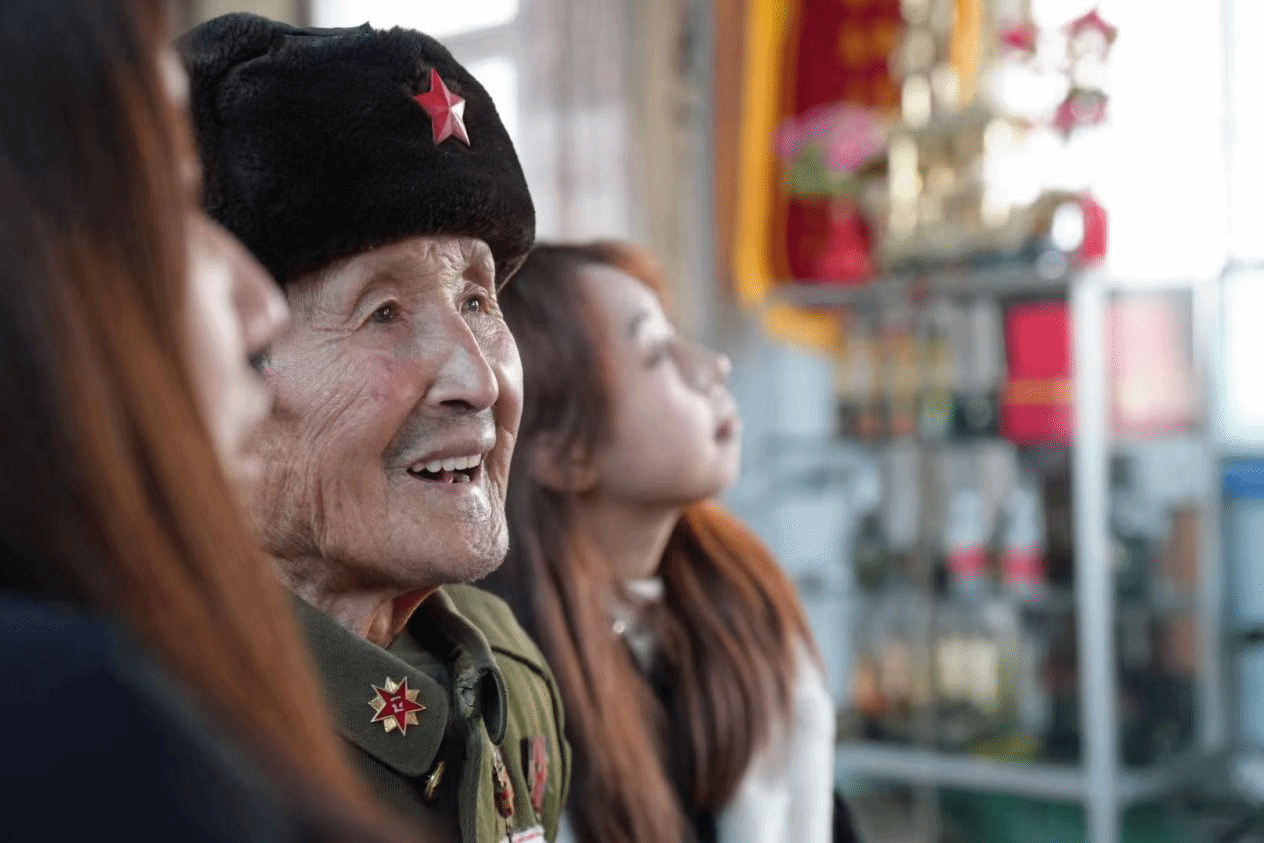 图1 志愿军老兵为实践团讲述抗战故事