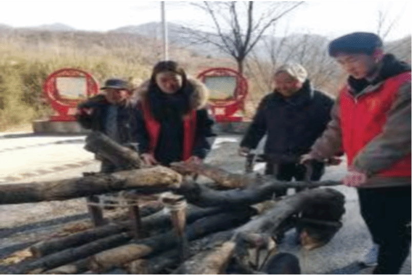 图3 帮助老人推车劈柴