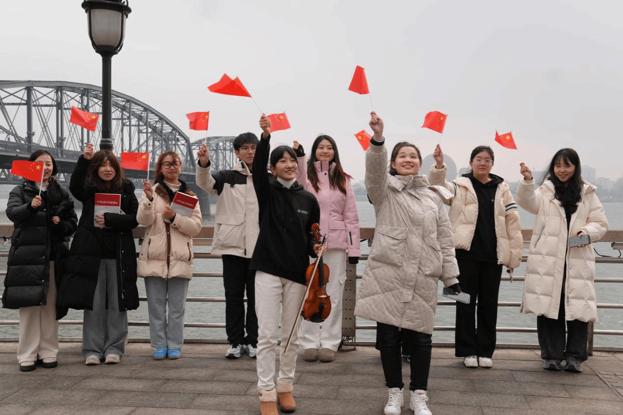 图2 实践团在鸭绿江畔合唱《我和我的祖国》