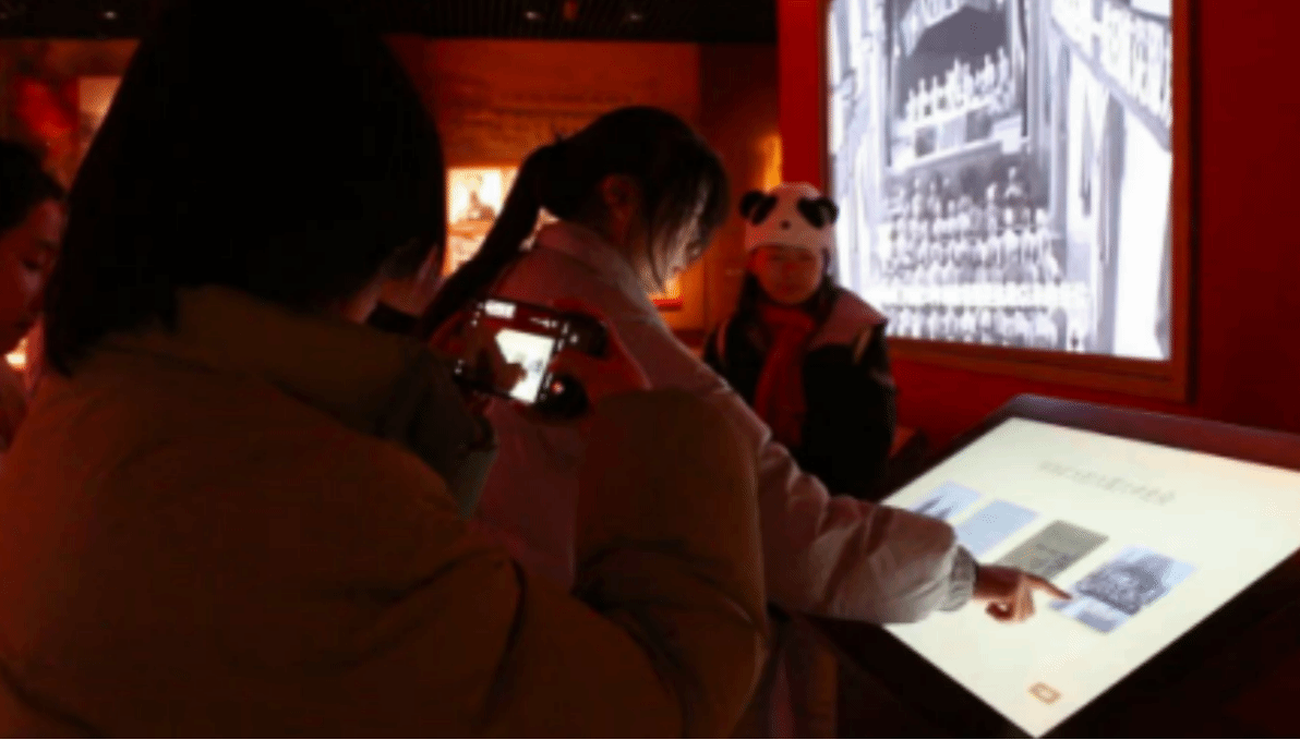 图3 实践团成员沉浸式体验场馆内数字化技术应用
